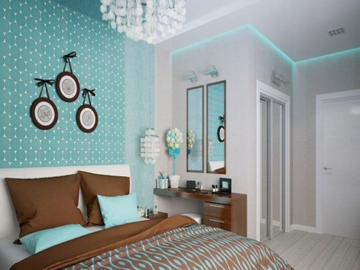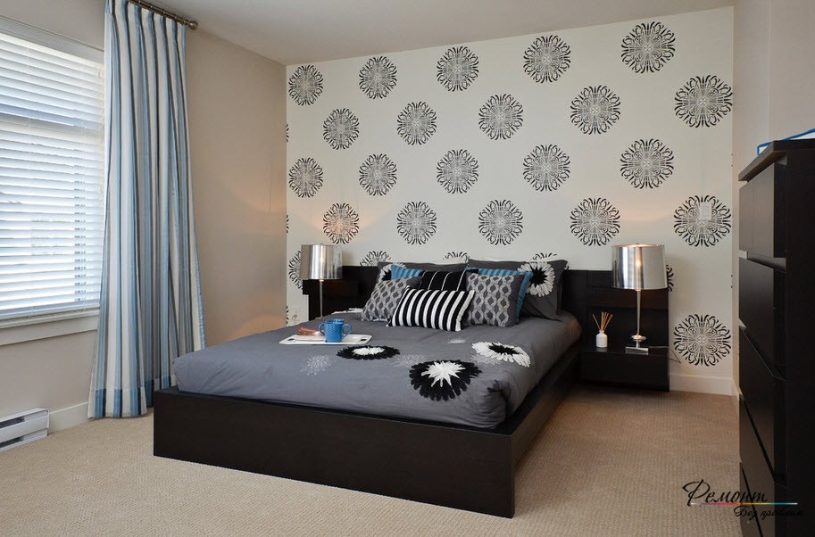 The main task of the bedroom - rest. Therefore, in this room the wallpaper has a simple color range (usually pastel colors). Wallpaper for bedrooms are chosen on the principle of light contrastwhich refreshes the interior and at the same time relaxes. It can be wallpaper with a light floral print, geometric pattern.