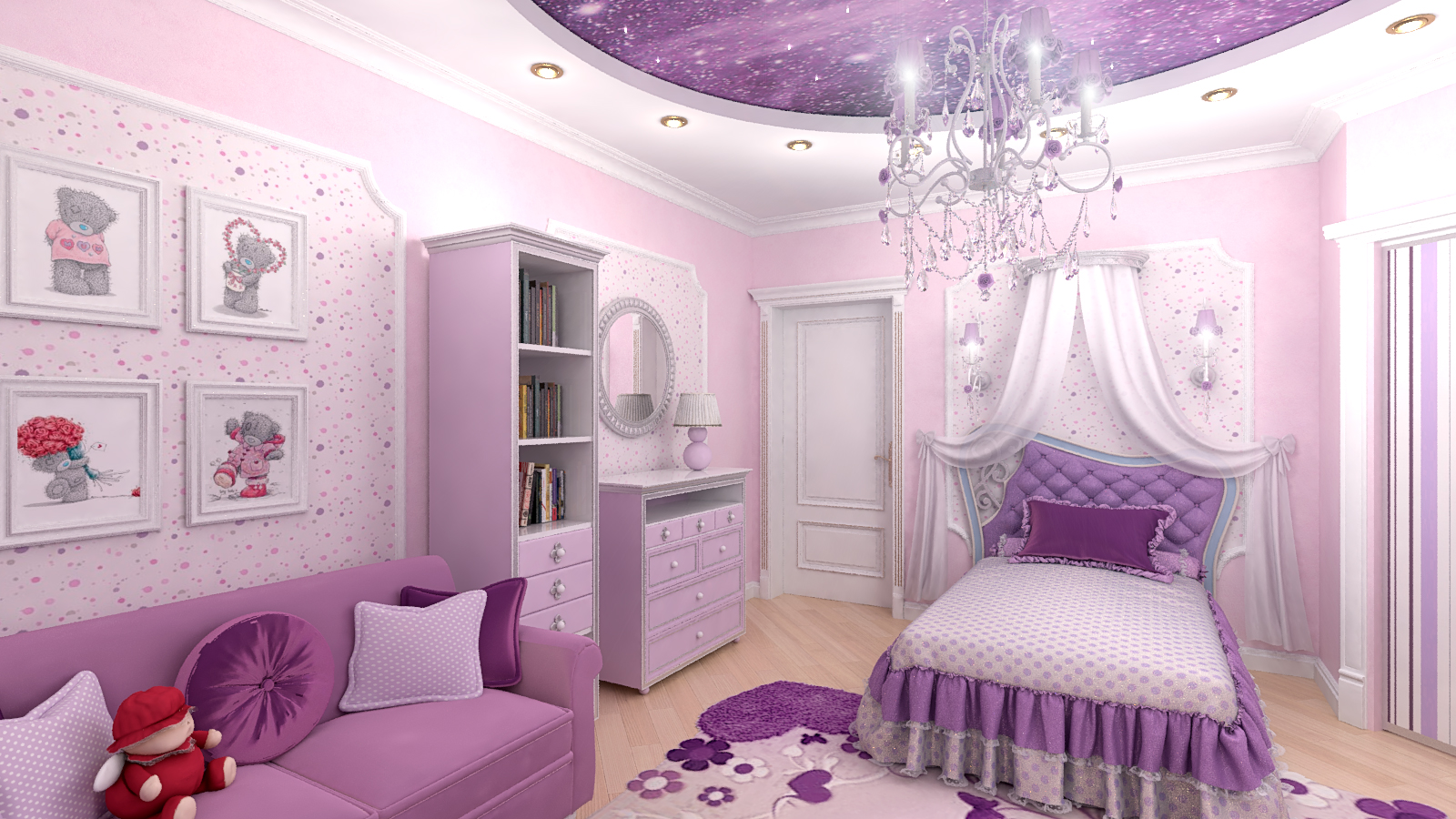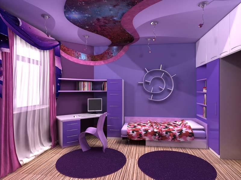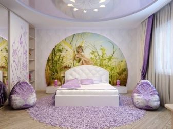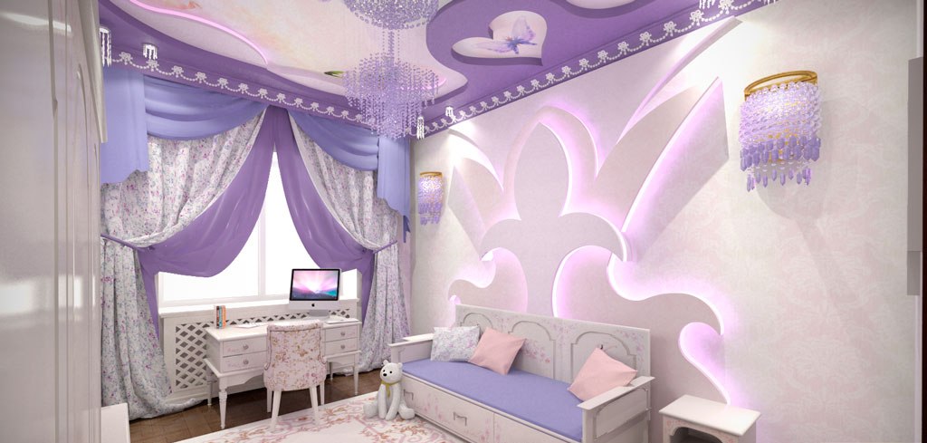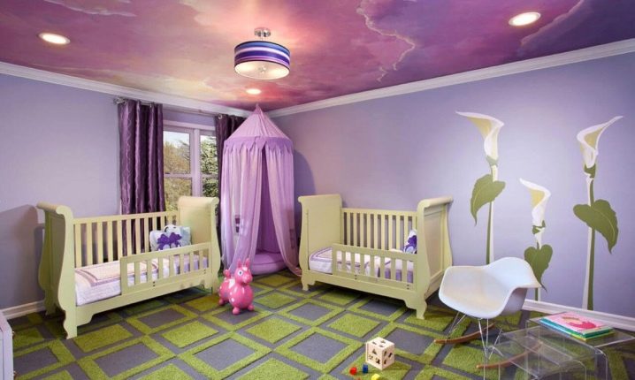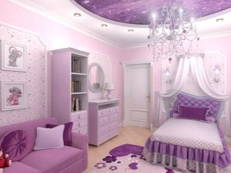 Delicate shades of lilac color are considered suitable for decoration of the ceilings of children's bedrooms, creating a feeling of immediate lightness, windiness and cleanliness, so characteristic of children.