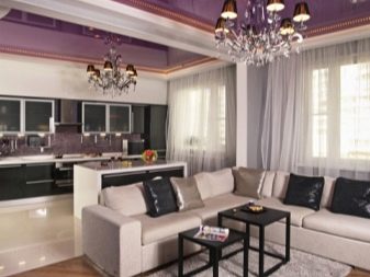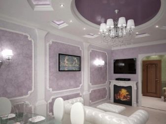 When installing suspended lilac ceilings, it is advisable to use other colors on the walls, contrasting or close to this complex tone.