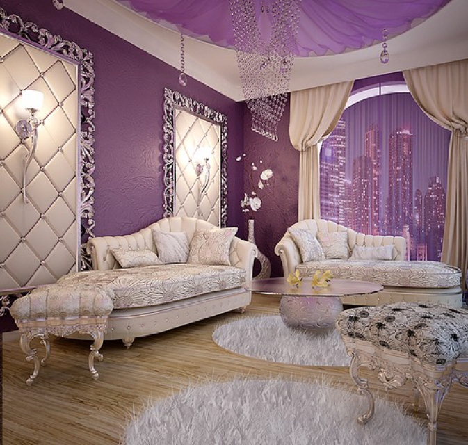 It is necessary to remember that lilac is a cold color, and it is necessary to take into account artificial lighting and the natural from windows, although some designers believe that the amount of light does not matter. You can properly selected colors of the walls illuminate the room, giving it a nobility.