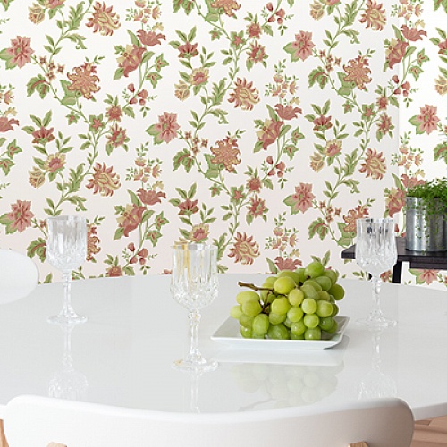 Original and beautiful look and floral motifs in the design of wallpaper. The most popular flowers are roses and gerberas.