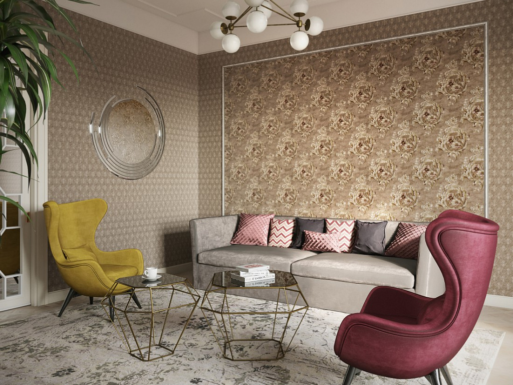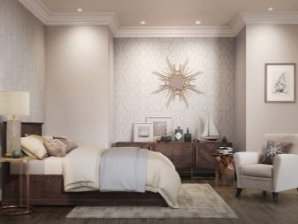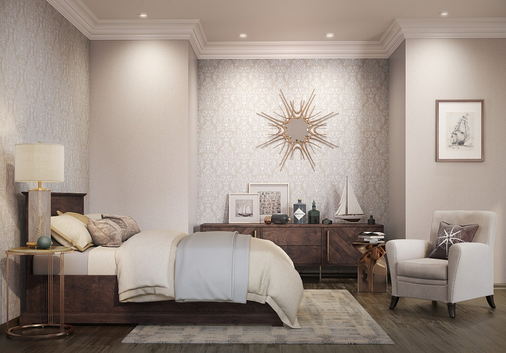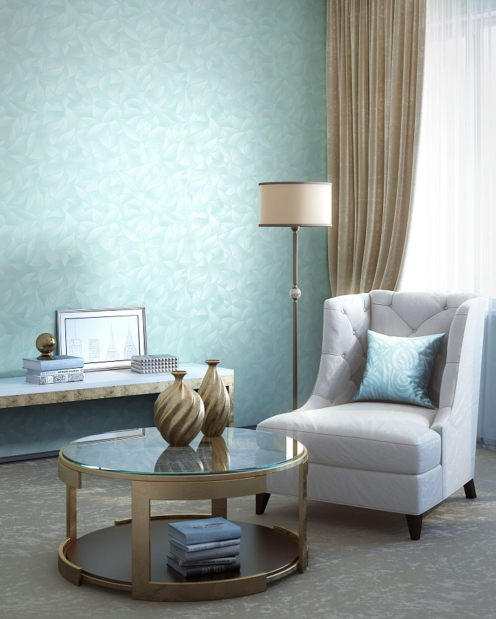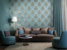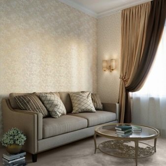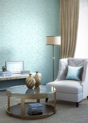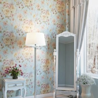 Use a wall covering in soothing tones: beige, light blue, peach. Wallpaper for such an interior can be chosen with an intricate pattern or abstract.