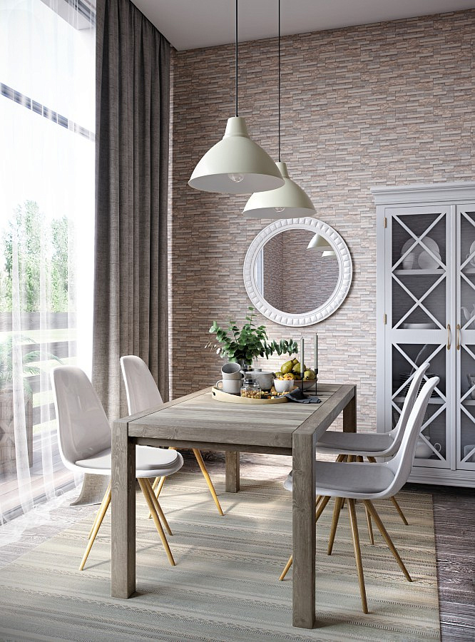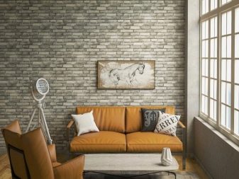 Wallpapers under the brick became popular many years ago. Today, you can pick up rolls with brickwork in different colors: from coffee to red. These wallpapers are perfectly combined with materials of a different color.