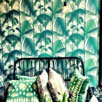 Vegetable prints imitating the branches of bamboo and reed, and indeed forest tropics, will be able to diversify your interior, bring into it the charm of the East or the riot of colors of the impenetrable jungle.