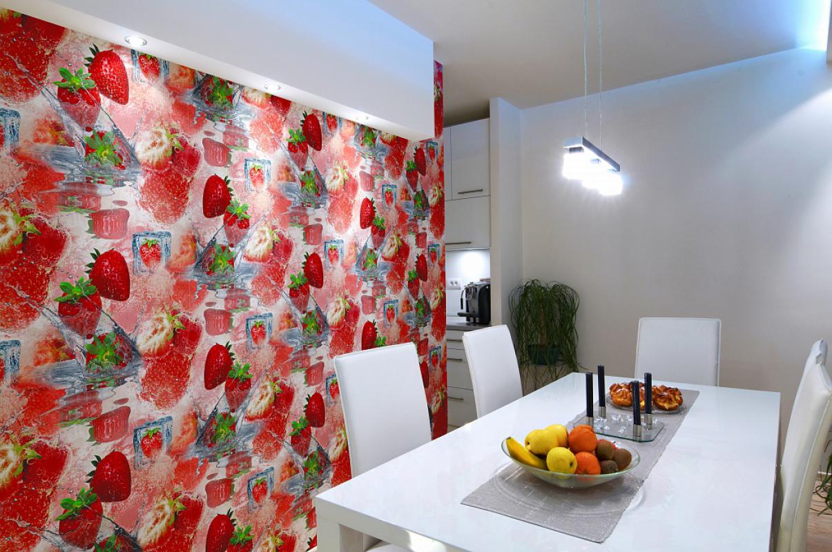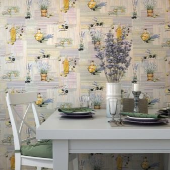 Flizelin - practical material, then if necessary, you can wipe and remove stains from it. This is very important for the kitchen room and corridor.Wallpaper sheets are perfectly glued both on concrete and plaster, and on wooden surfaces.