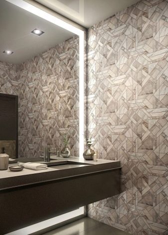 By the way, today in the trend wallpaper with a floral print in the bathroom. Replace the bored tile with outlandish flowers framing a large mirror and emphasizing the whiteness of the bath. However, for rooms with high humidity will need rolls with special markings..