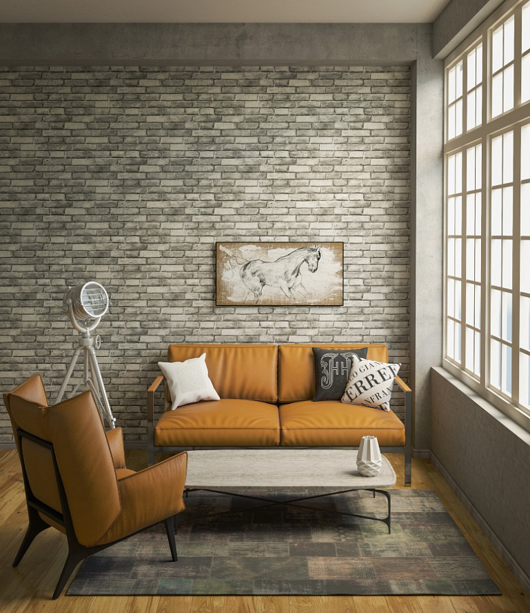 "Palette" will give you a lot of impressions, offering prints in the style of a loft under a stone, brick or natural wood.