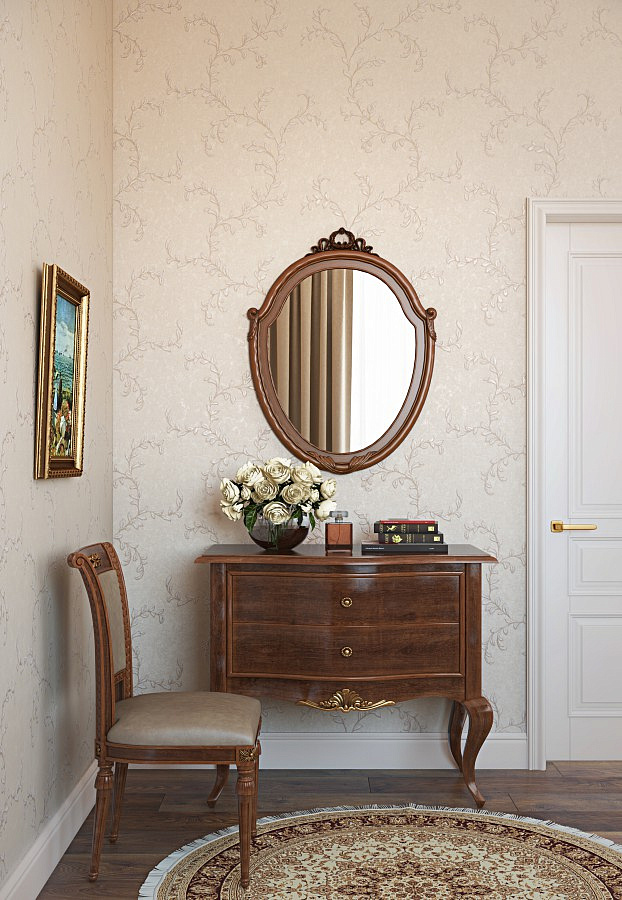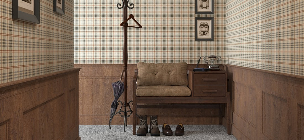 Choosing a wallpaper in a cage, you give the room a cheerful mood. Striped floorings make the interior more formal. Wallpaper with an openwork pattern or monograms give the room elegance and luxury.