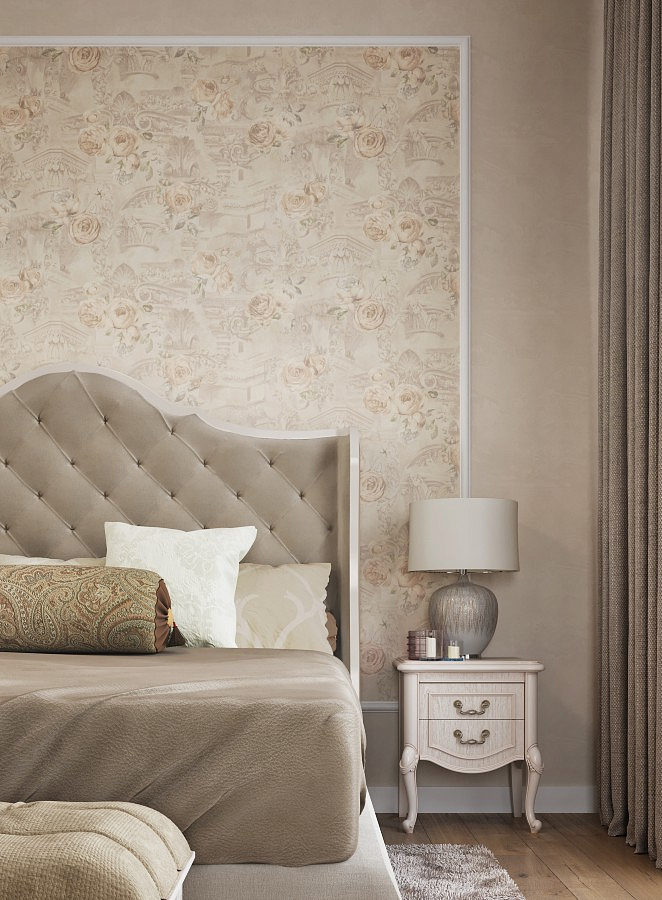 Wallpapers for a girl's room with pastel roses or mysterious violets - new items for this season. These include the series from the HomeColor collection with floristic elements, sustained in delicate tones: waving roses on a beige, dairy and pistachio field.