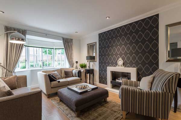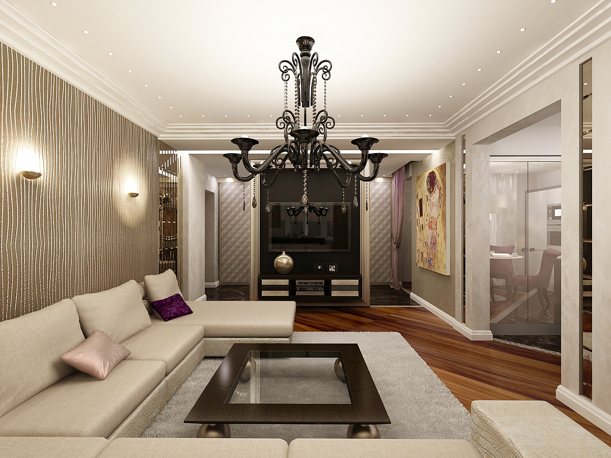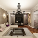 In the living room will be appropriate a wider range of colors. Trendy wallpaper under brick, concrete or stone will effectively stand out in the style of a loft. The hall can be decorated with decorative panels with large geometric patterns or stripes.