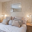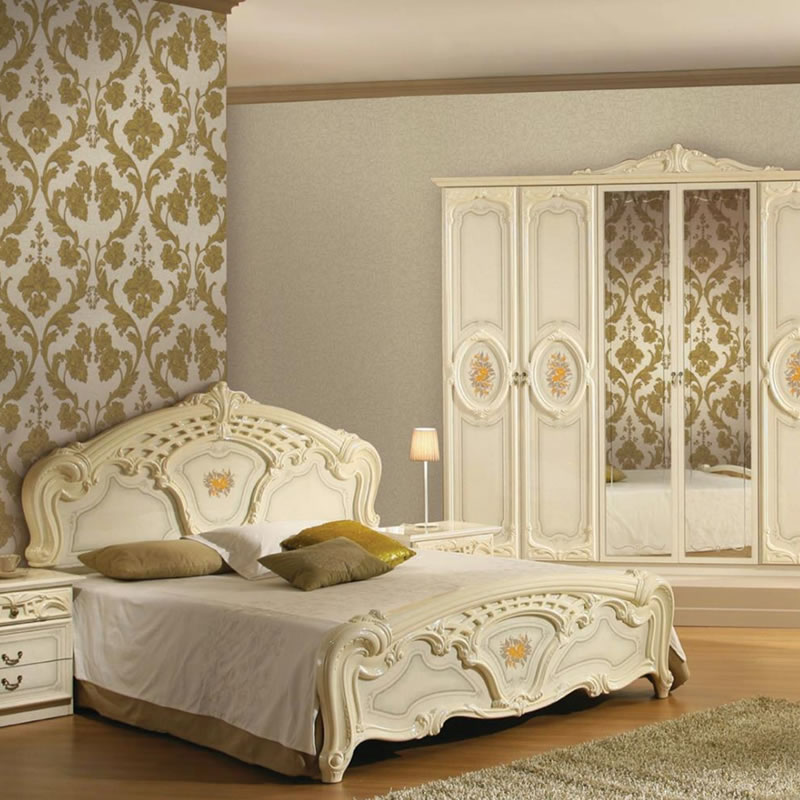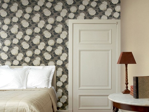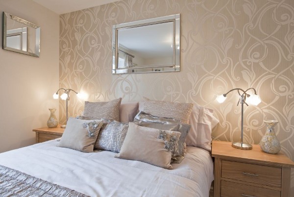 In the bedroom fit plain wallpaper of light shades. If you want to achieve a bright accent, it is better to choose a wall behind the head of the bed for this: monograms, large curls, delicate flowers will be spectacular.