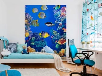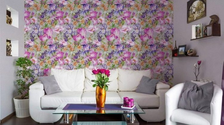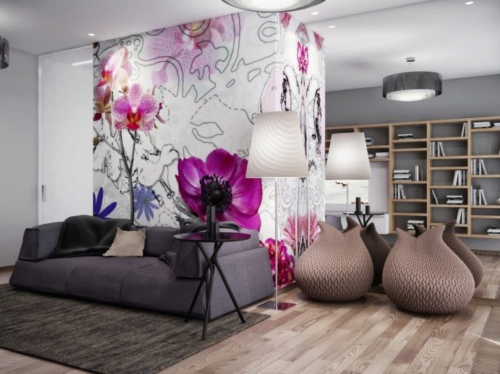 For fans of the original decor, realistic scenes and bright colors should pay attention to the photo printing. Photowall-paper on a flizelinovy basis can be with any images: huge roses, branches of orchids, sea subjects, landscapes or types of the cities. The main thing is that the rest of the room, floor, furniture and furnishings should be in soothing colors and in harmony with each other. One bright accent in the form of photo panels will suffice.