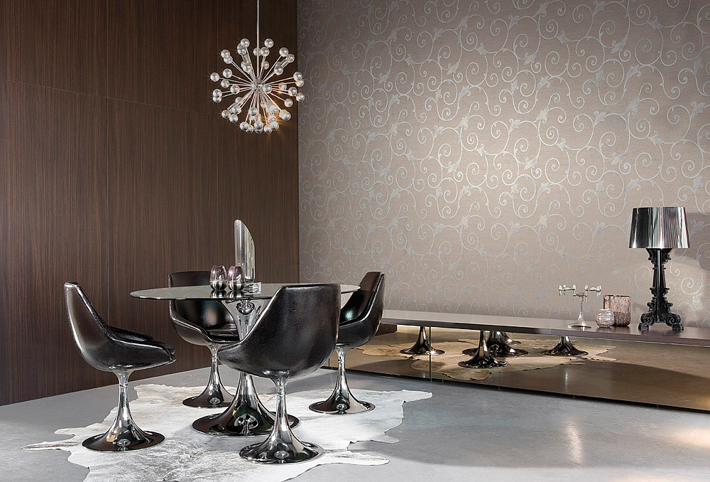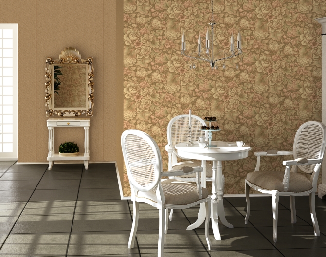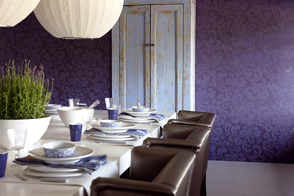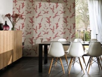 Silk and linen, gorgeous flowers, velvet and jacquard on the wall will not leave anyone indifferent. True, these wallpapers are difficult to care for and absorb the smell. Therefore, for the dining room they should not be chosen unequivocally.