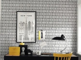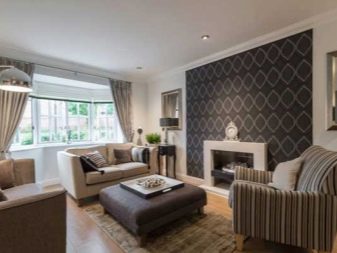 Industrial style in a studio apartment highlighted wallpaper under brick or stone. The wall or niche, highlighted by this decor, will become the central art object in the room. But the wallpaper will not convey the coldness of natural materials.Accents in the form of wallpaper with large patterns: with roses, monograms, Turkish cucumbers and twisted ornaments are suitable for interiors in a romantic or oriental style. Striped non-woven wallpaper can be combined well with solid colors.. It is better not to cover with stripes more than one wall in the room. The combination of bright colors in the stripes will give the decor a kind of surrealism, and beige and white combinations will seem strict and at the same time delicate.