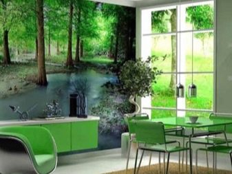 In the kitchen it is better to choose washable wallpaper without natural coatings. The wallpapers will perfectly fit into the dining area. Cheerful landscapes or extraordinary images with one large object will create a mood and unique design.