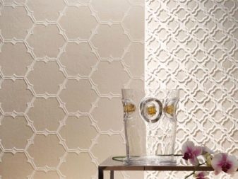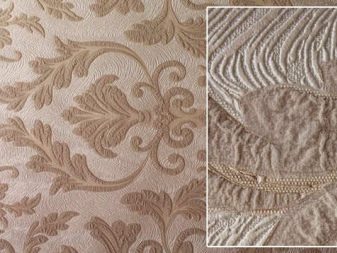 Coatings are always multi-layered. There may be several layers of non-woven fabric, forming structural patterns. If we consider coatings with non-woven base, then they can take on virtually any form: under the decorative plaster, monogram ornaments, geometric texture patterns,flowers with glitter, etc. This coating even has the ability to accurately convey the texture of wood, fabric or leather. Therefore, they are much more economical to use if you want to imitate any expensive natural material for decoration.