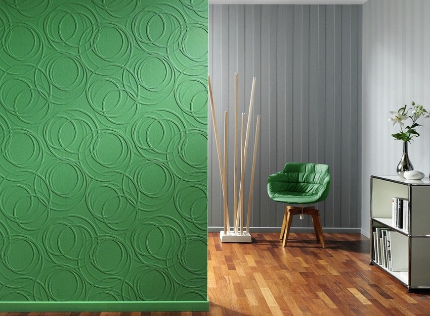 - The relief surface of the wallpaper allows them to improve the appearance of the walls: to hide small cracks and irregularities.