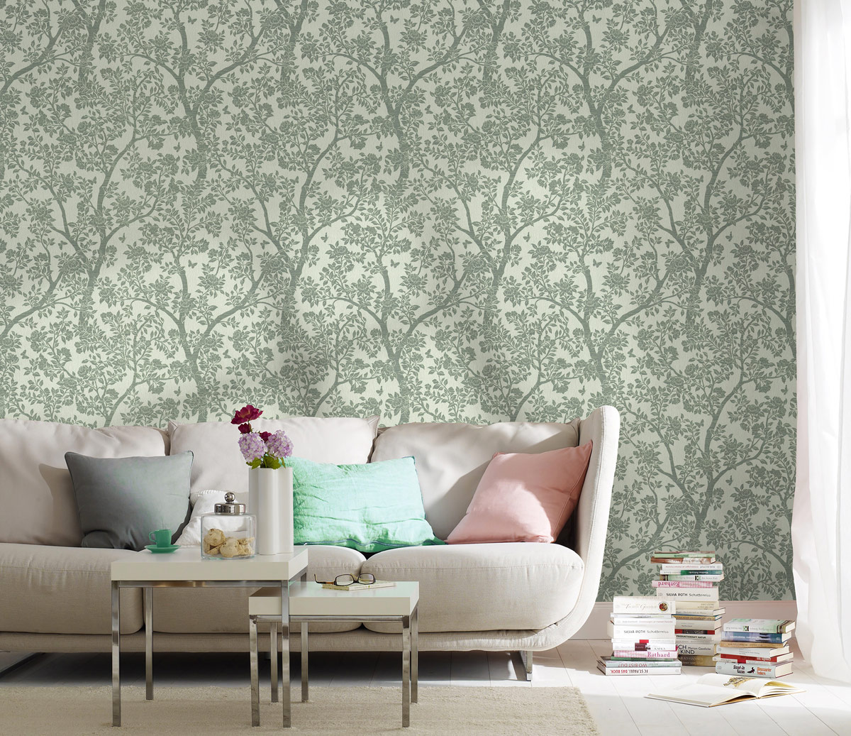 The classic design is designed in soothing colors. But the large pattern with modulations adds solemnity and chic to the atmosphere.