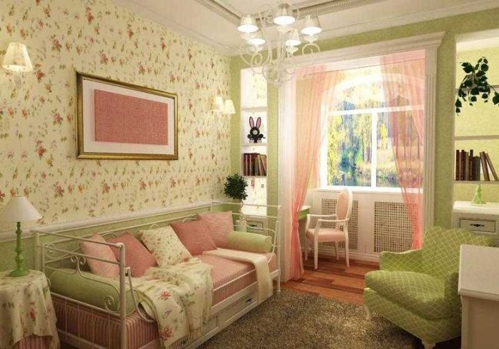 Fans of floral prints will love the small pattern on the walls in the room in the style of Provence.