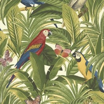 Another interesting line of vinyl wallpaper Grandeco - Deco4walls. It includes a decent number of items, among which it is worth highlighting the collection. "Botanical". Juicy monochrome wallpapers are combined with a riot of colors in the form of large flowers, palm leaves, bright butterflies and parakeets. The series quite realistic imitates both the jungle landscape and the ethnic pattern of Moroccan tiles.
