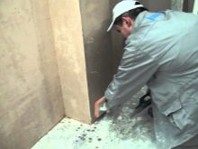 - Concrete walls must be well cleaned to the ground. Old wallpaper, whitewash, plaster or paint should be removed. The paint is removed using a solvent. Whitewash or plaster is washed away with a wet sponge or brushed with a metal trowel.
