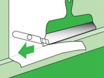 - It is necessary to make allowances of a few centimeters for the joint with the floor and ceiling. After drying the glued canvas, the stock is cut off with a stationery knife.