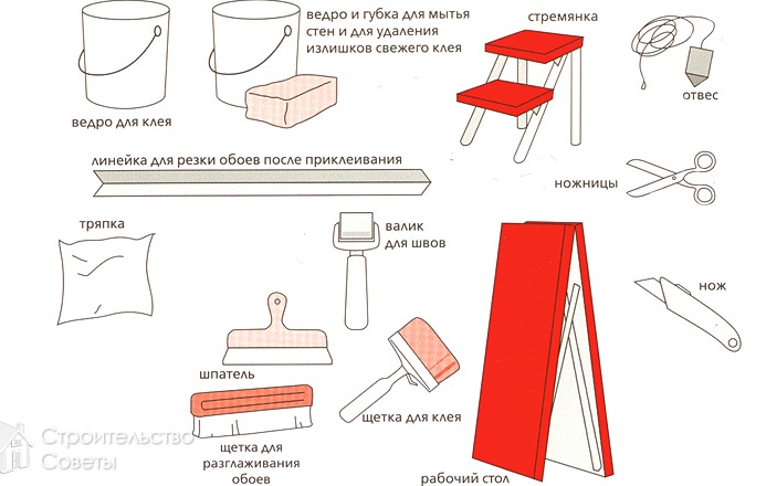 To make papering the walls with paper wallpaper, you will need the following tools and materials: