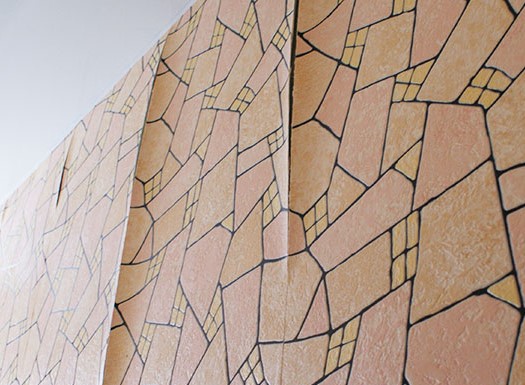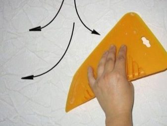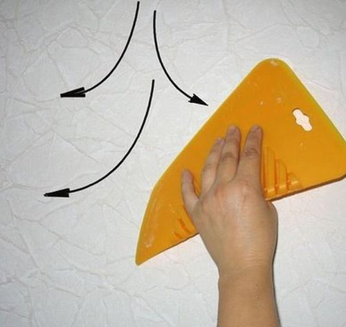 After spreading the glue and removing the excess, the glued part of the wall covering should be pressed tightly and try to level the folds. As soon as the area dries out, minor irregularities smooth out.