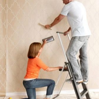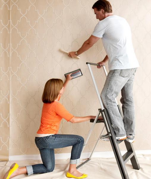 Glue can be applied either on the canvas or on the canvas and the wall. Then you should firmly press the wallpaper, and expel the air from under the glued area. It is recommended to use a soft dry cloth for paper wallpaper, and a rubber roller for vinyl and non-woven wallpaper.