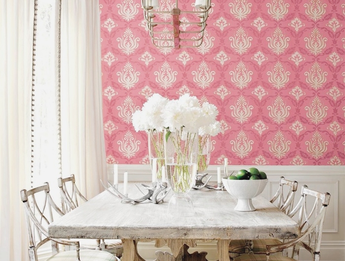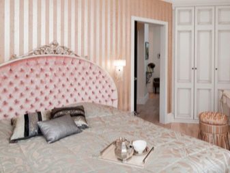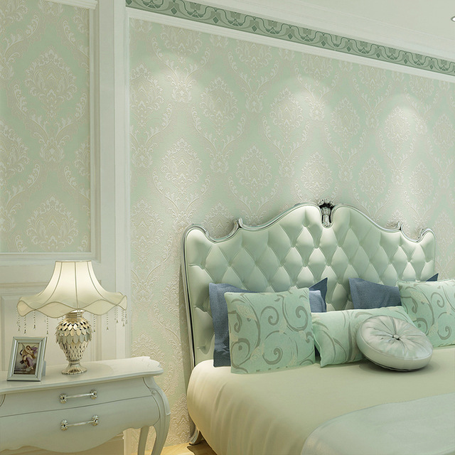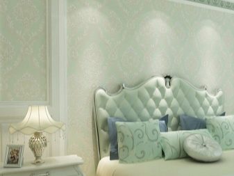 To the elegance and solemnity added notes of intimacy and some romanticism. Replaced by saturated and thick colors comes pastel gamma. Beige, green, pink and blue canvases are ideal. It is recommended to make a choice in favor of textile type of finish.. On the background can flaunt intricate patterns, silver or gold.Buyers can choose between floral designs, diamond-shaped patterns or fine monograms.