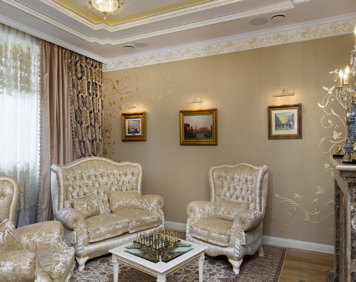 In baroque, rococo or any other similar style it is impossible to arrange only one room of the house. This is the direction for the whole house.