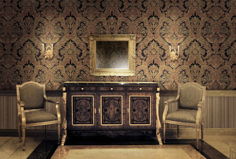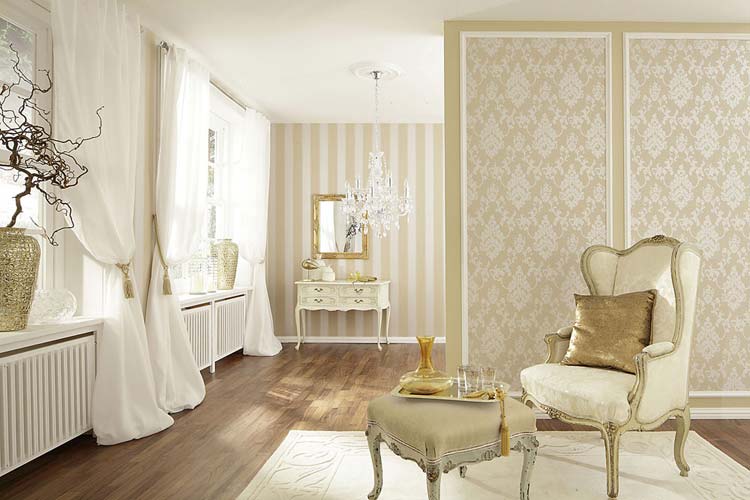 This style is characterized by luxury, wealth, an abundance of decorative elements (paintings, figurines, vases and much more). Wallpaper for the above interior should have the following characteristics: