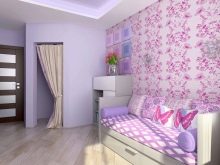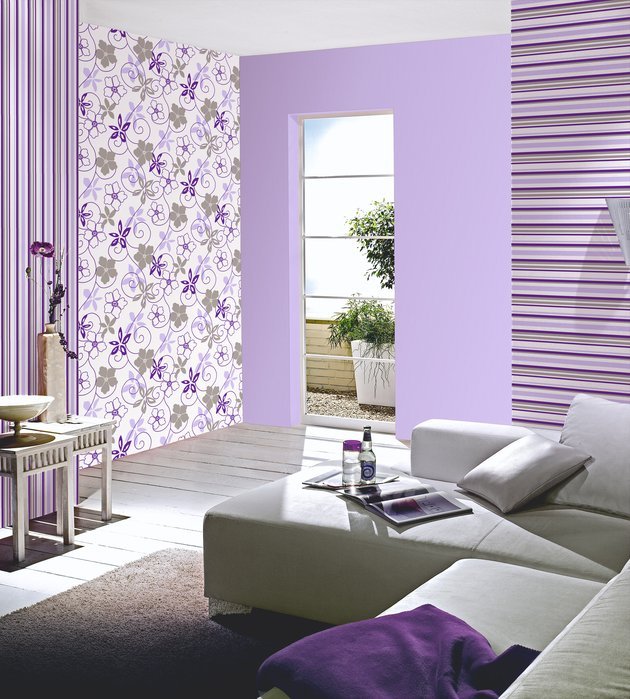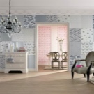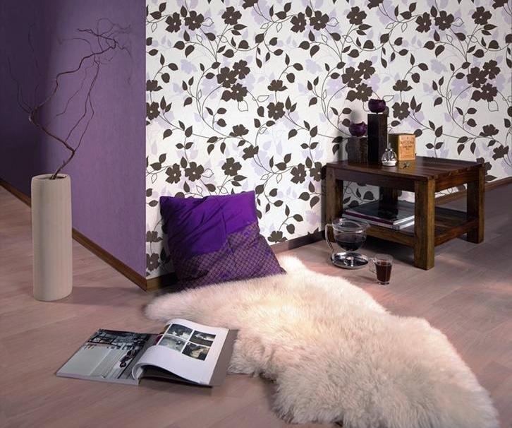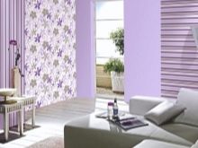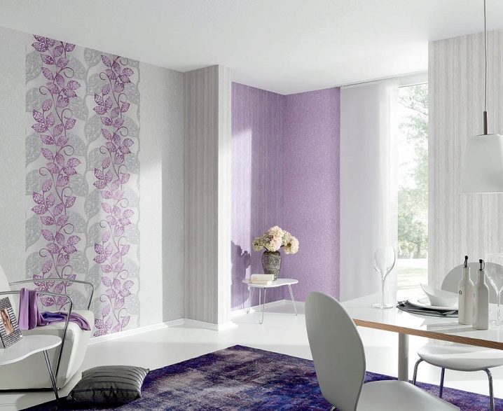 - Violet shade interestingly combined with blue, white and silver option. Such wallpaper can be a highlight of the interior.