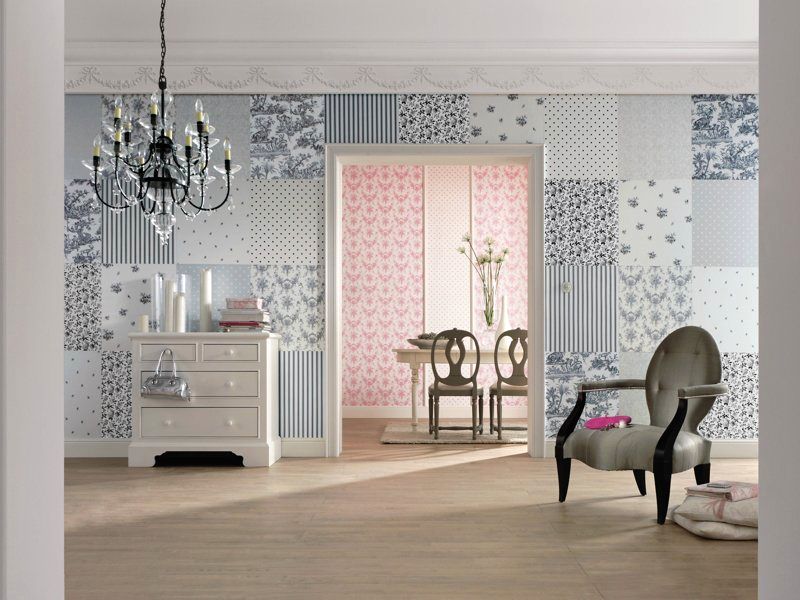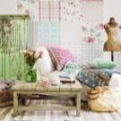- Combining patches. This method is most suitable for children's rooms. In addition, it can be used by those who love an unusual bright interior and is open to all experiments. You can cut patches of small size from all your existing wallpapers that are left over from repairs. But all these patches should have at least one common shade or a general texture.Flap inserts can be glued overlap each other or end-to-end.