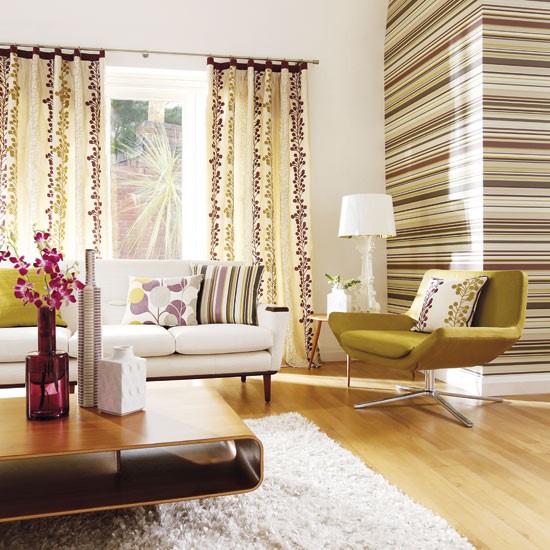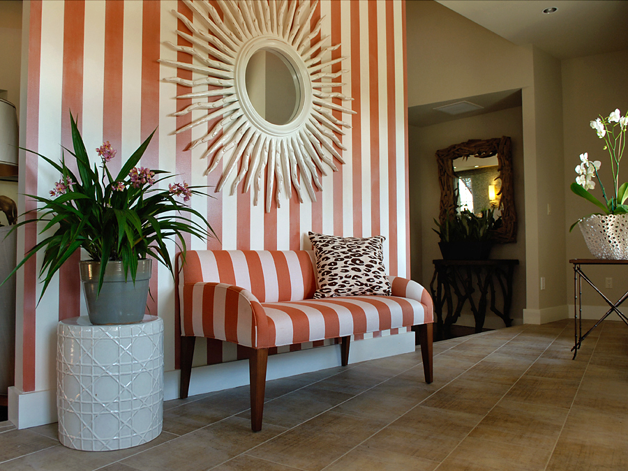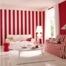 Striped decor looks very bright. In this case, choose contrasting color combinations. They allow zoning and make the room more interesting. The most juicy is the combination of red and white. These bands are perfect for decoration of modern interior.