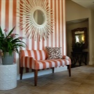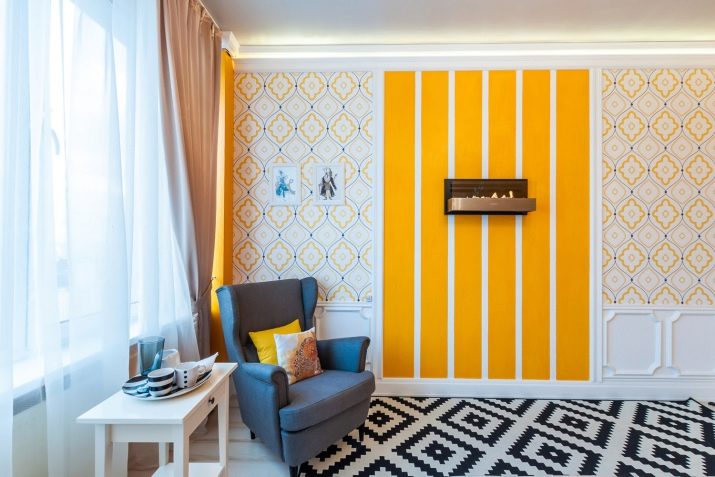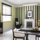 As for the vertical stripes, then they allow you to visually pull the room up and expand it. Some even transfer the pattern from the walls to the ceiling, which seems to be a continuation of one of the accent walls. This combination is a very unusual decorative move that will surprise your guests.