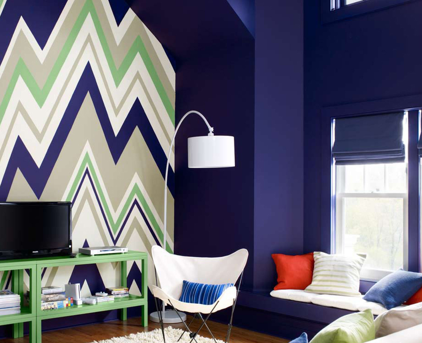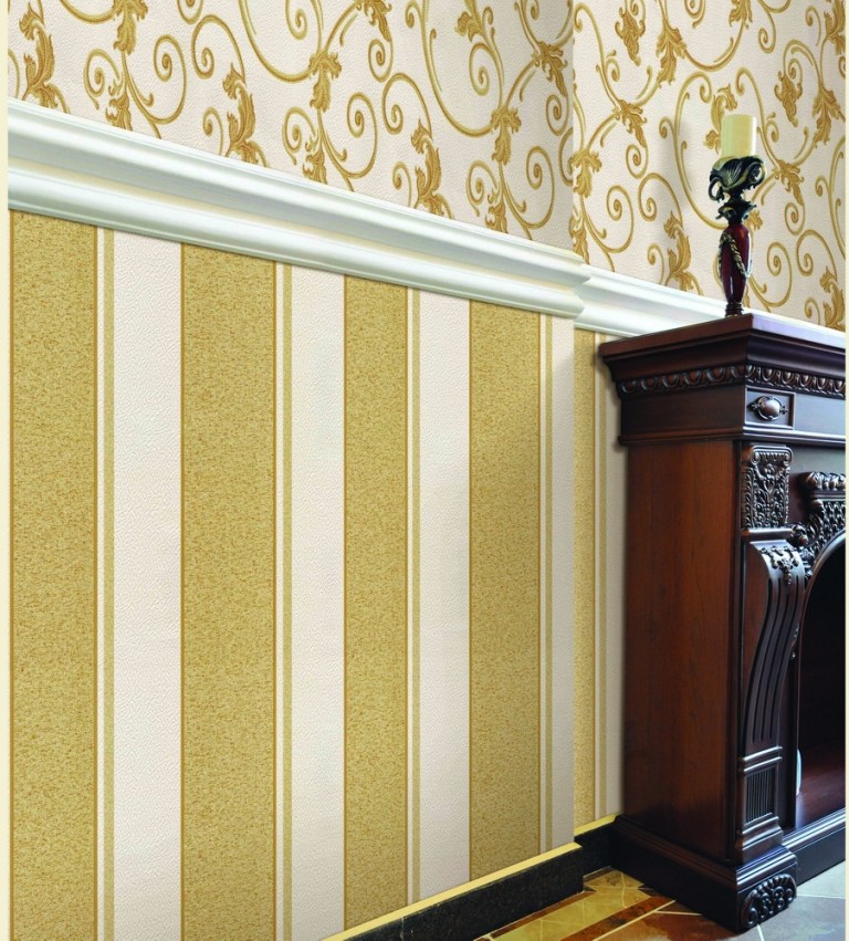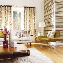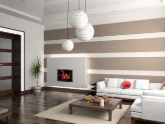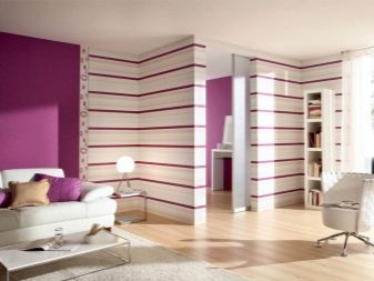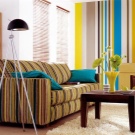 For modern interiors you can use combination of narrow contrast bands. This is a bright and stylish solution. In order to design the interior in different styles, a different combination of bands is used. So, in an interior in the style of a classic, they prefer to place the stripes vertically, while using shades related to pastel colors, such as light pink, beige, pale brown