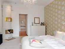 - Combination by highlighting protrusions. In some apartments, the wallpaper allows you to somehow decorate existing niches and ledges. After all, not all apartments such features of the walls look elegant, but, on the contrary, are a lack of interior. But this disadvantage can be easily brightened up and make it a big plus interior. As a rule, a niche or overhang is pasted over with brighter contrasting wallpaper, as compared to the background. And for their design often use wallpaper with a volumetric texture or an unusual pattern.