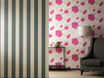 Decorative design is a very important component when combining wallpaper. As a rule, wallpaper with a pattern is much more difficult to combine than plain versions. Decorating with large flowers is very popular. At the same time combine a floral ornament in different sizes. You can choose the options that has a decor in the form of floral stripes. Floral design also looks very nice in the rooms in addition to large flowers.