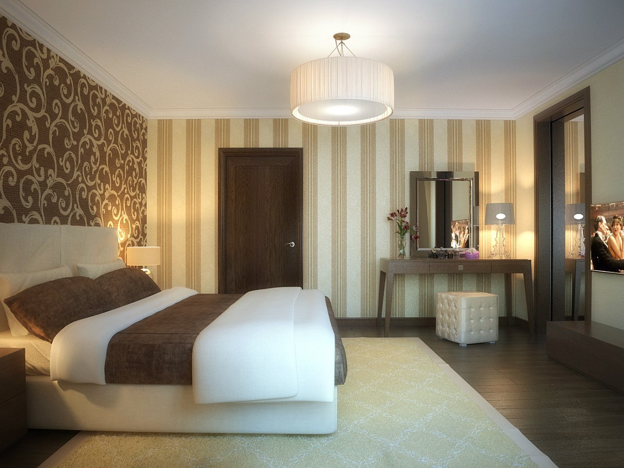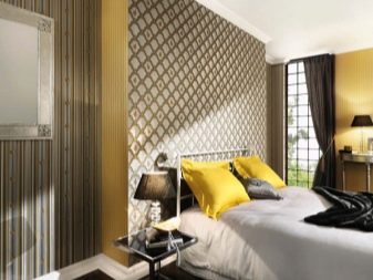 In the bedroom, the combination should be the most harmonious and restrained. Try to get bright wallpaper that blends well with each other. and belong to the same color scheme.Perfect combination of beige with brown or olive with terracotta. A horizontal combination is perfect for the bedroom. In this case, you can give preference to light wallpaper with monograms on the upper part of the walls and darker wallpaper on the bottom.