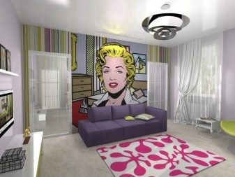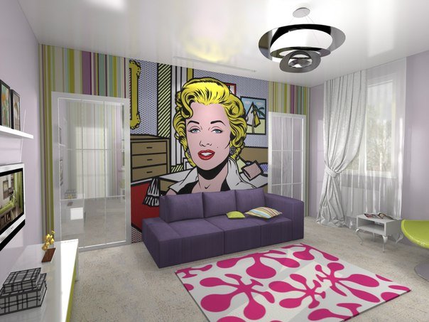 For a vintage style also use more delicate shades and coffee options. The brightest is the style pop Art. It is a combination of strips of wallpaper in contrasting colors, such as white, red, yellow, green and others.
