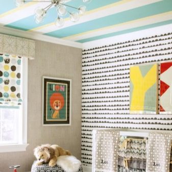 In addition, in this case, the color gamut can be completely contrasted. So you can pull the room up and sideways. And you can use not only monochrome shades, but also bright coverings with an ornament.