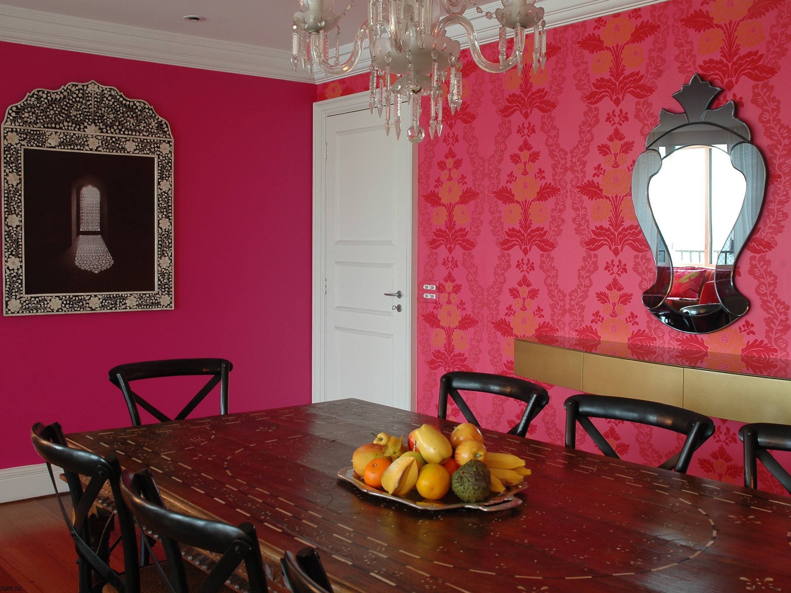 More unusual and bold is the combination of shades of contrasting colors. In this case, you can choose diametrically opposite tones in the palette and combine them both within different walls and within the same surface. The main thing, Primary color should be combined with furniture, and with other coatings.