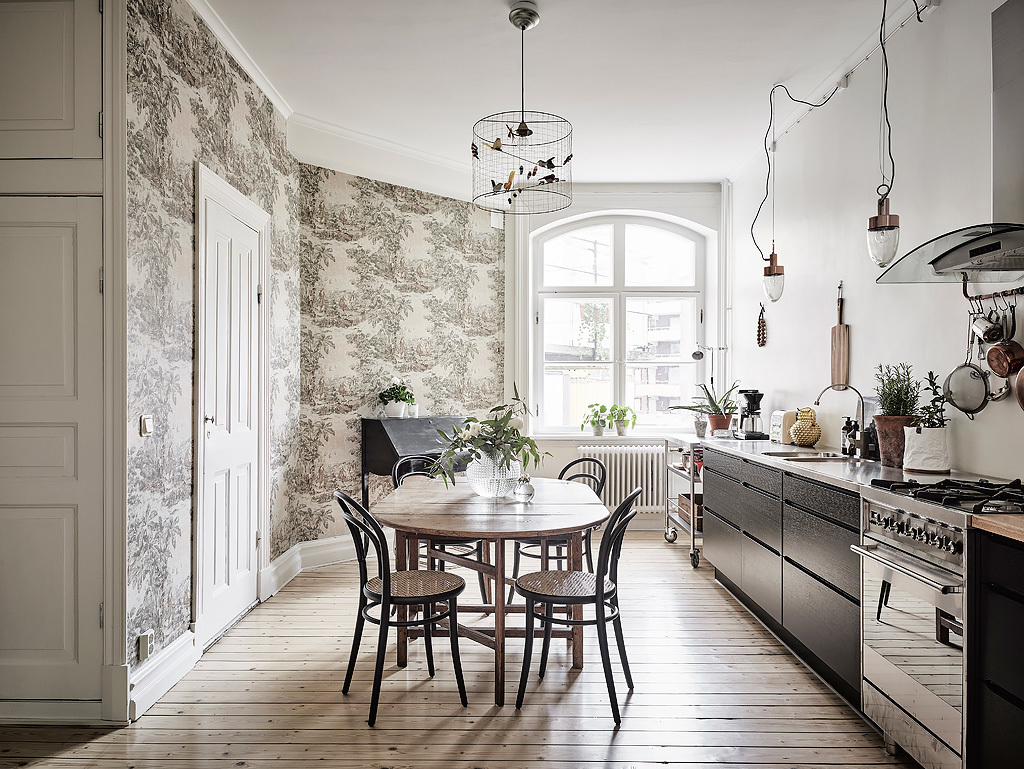 But for small kitchens it is better to use light-colored wall coverings with a small pattern.