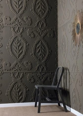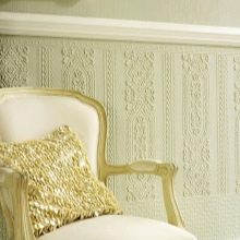 Glazed wallpaper stand apart. This type of decorative coating is interconnected fibers obtained by heating a specific type of glass. These wallpapers do not lose their relief, even with repeated staining. They are fireproof, eco-friendly.