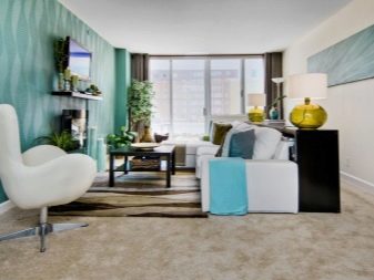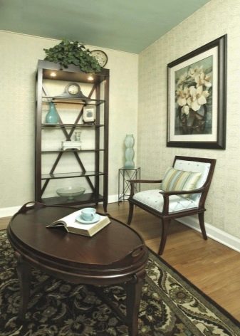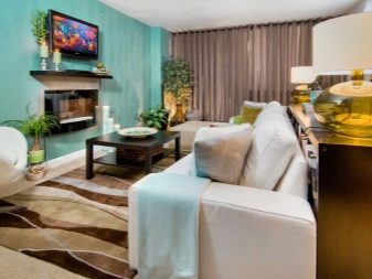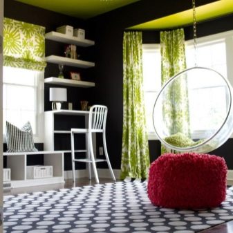 Increasingly, you can find small cubic capacity, painted in dense dark or brightly bright colors. In this case, light light curtains, neutral upholstery and a quiet flooring help to bring the room to harmony. Thus, it is possible to avoid the feeling of the atmosphere, cramping, and the walls in this interior begin to play the role of the main decorative element.