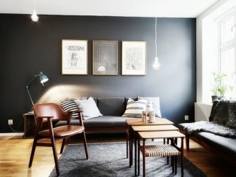 Painting walls, it is possible to combine various colors and textures to highlight individual zones. Graphite paint is very popular. It is rarely used for solid staining, but as a color accent, it is very much in demand.