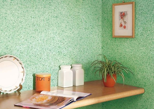 It is necessary to mention this type of wallpaper as liquid. This type of coating is a mixture of cellulose, mica, dyes and adhesive. Wall-paper is applied on a pre-primed wall with a spatula or a pistol. Covered in this way the surface is seamless.