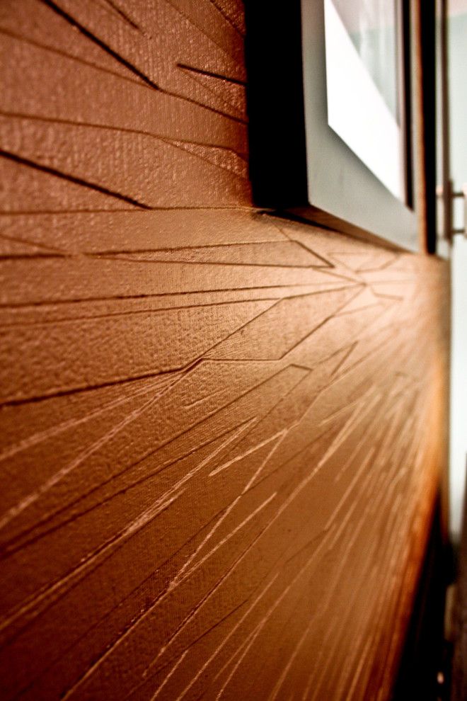 Embossing is created by treating the upper layer with a stencil roller. For the formation of the structure using wood fibers, placed between layers of paper. The larger their size, the more pronounced the relief of the canvas.