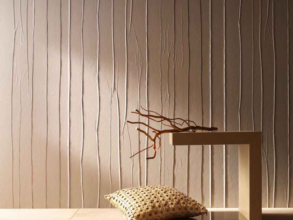 Represent a canvas made of paper or non-woven base. The decorative layer is made of natural or synthetic fibers.